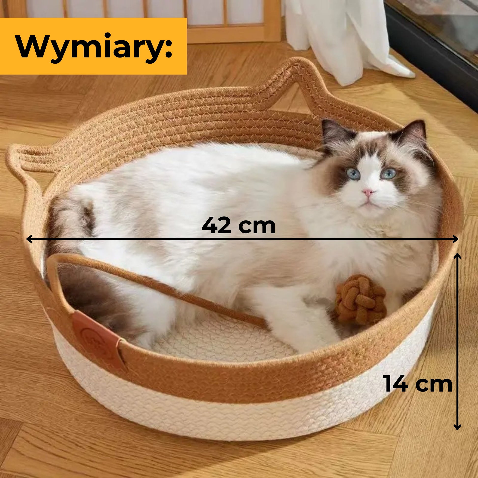 KocieGniazdko zostało wykonane ręcznie z naturalnego, przewiewnego sznurka – bez plastiku, barwników i sztucznych elementów.